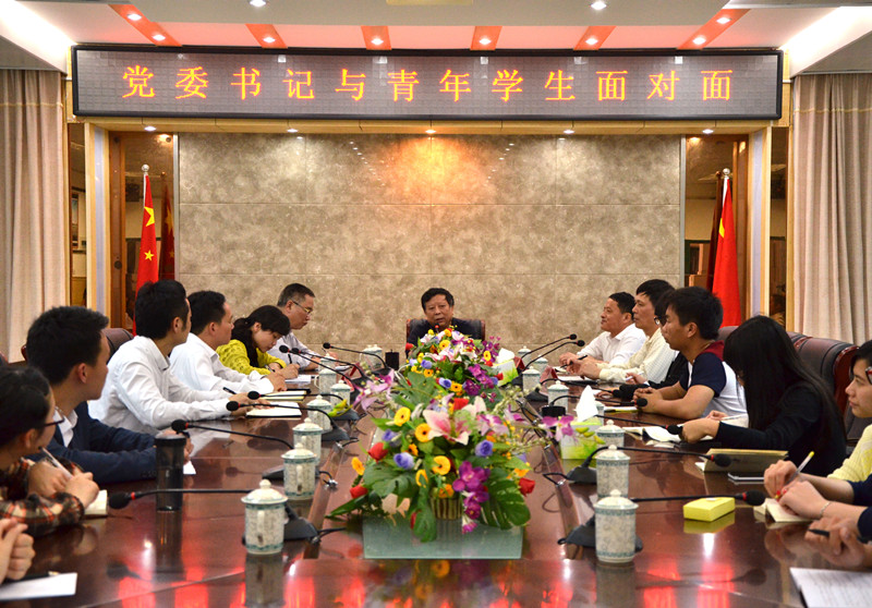 5月4日下午,在纪念五四运动96周年之际,我校在东侨校区求知楼A308举行党委书记与青年学生面对面座谈会。校党委书记江小源、校党委副书记张星、校党委组织部部长许敏雄、校党委宣传部部长赵公弼、学工处处长丘怡、校团委副书记张秋良等参加了交流会。交流会由张星副书记主持。